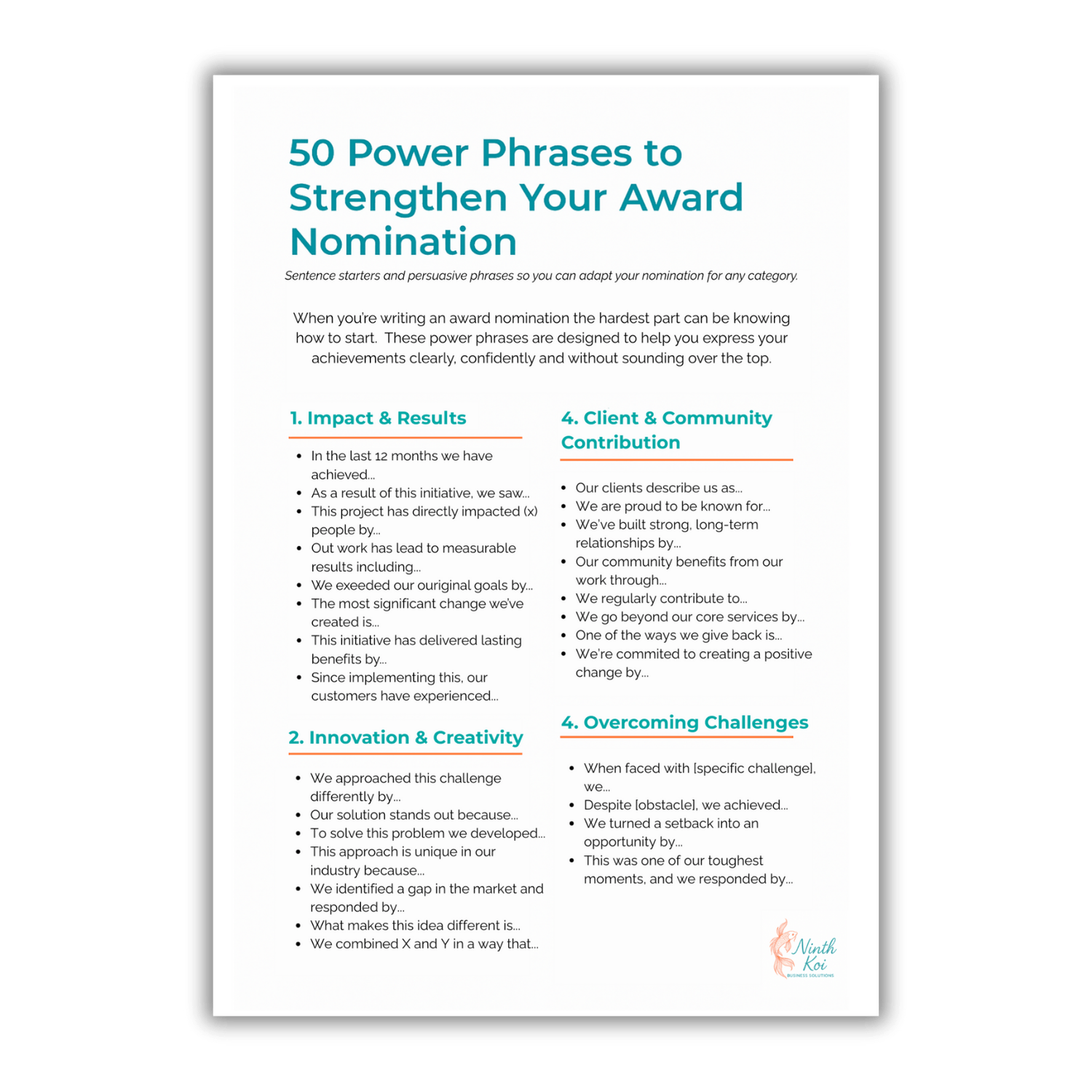 Writing award entries is hard — especially under pressure. This bonus guide gives you 50 high-impact phrases to help you: